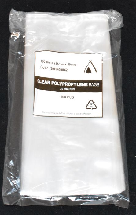 Poly Bag 235x100+50mm (9x4+2) 30UM 100 Slv
